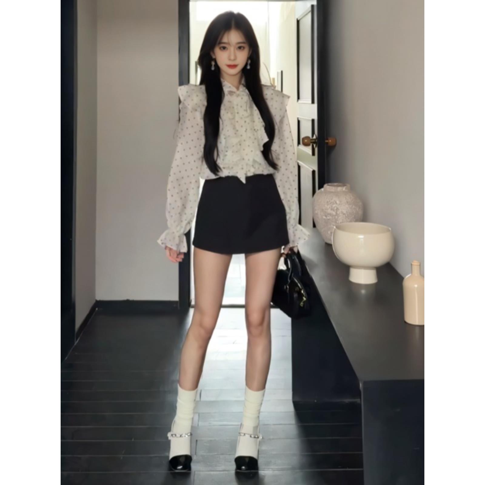 荷叶边波点长袖薄款防晒衬衫炸街独特别致小衫女2025秋季韩系上衣