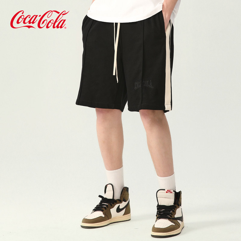 Coca-Cola/可口可乐不对称条纹拼接Logo刺绣休闲宽松运动五分短裤