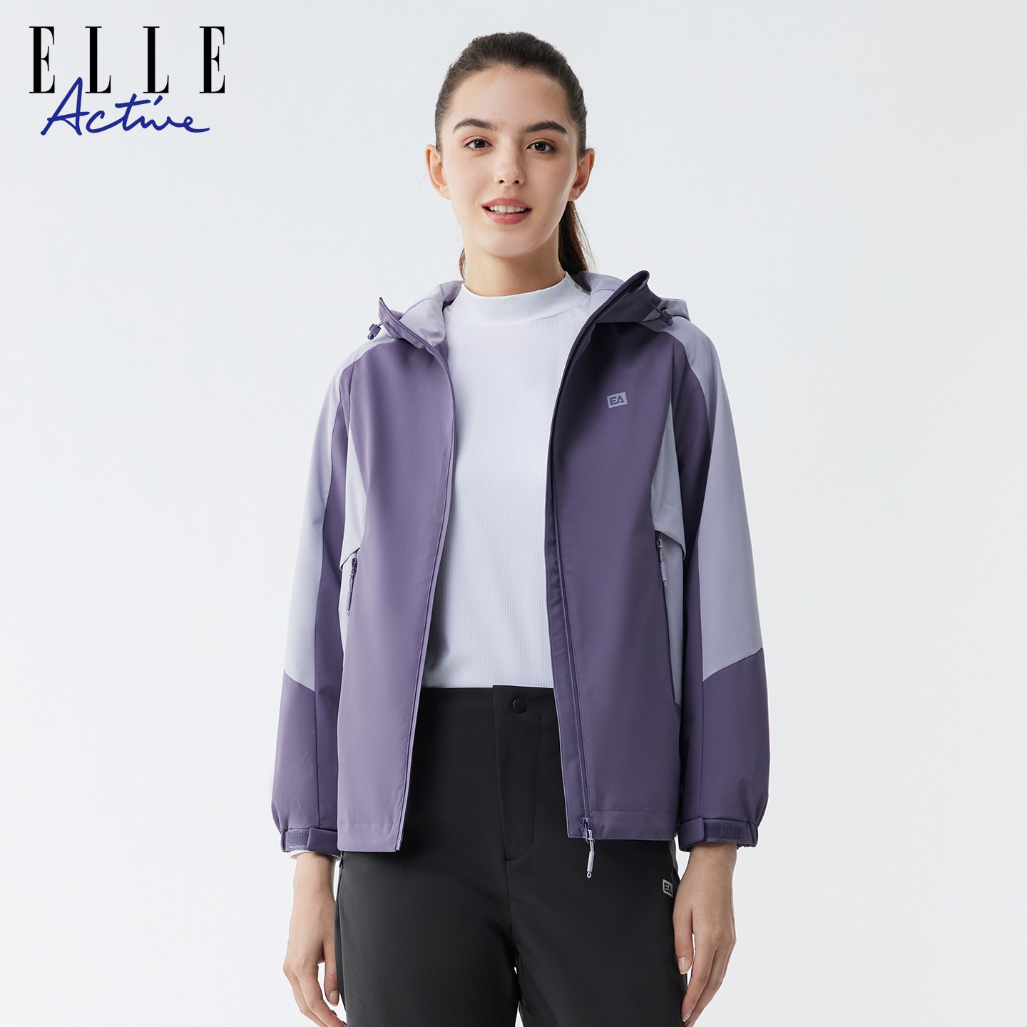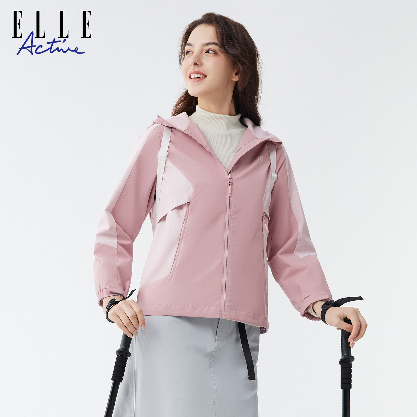 ELLE ACTIVE撞色短款风衣25秋季新款运动户外休闲梭织弹力外套女