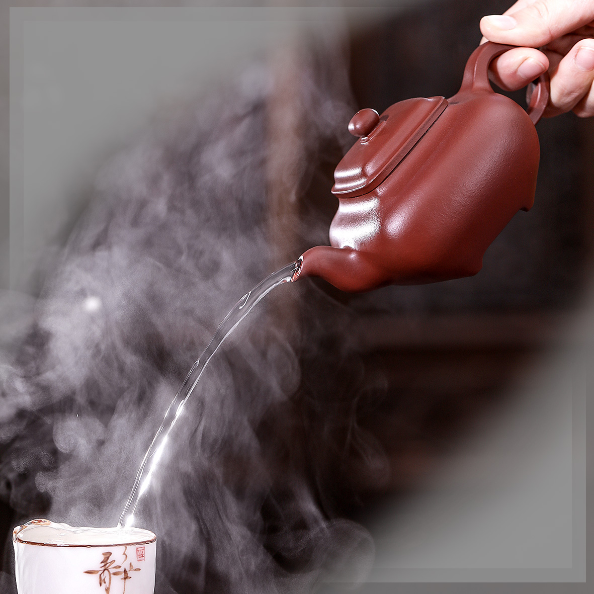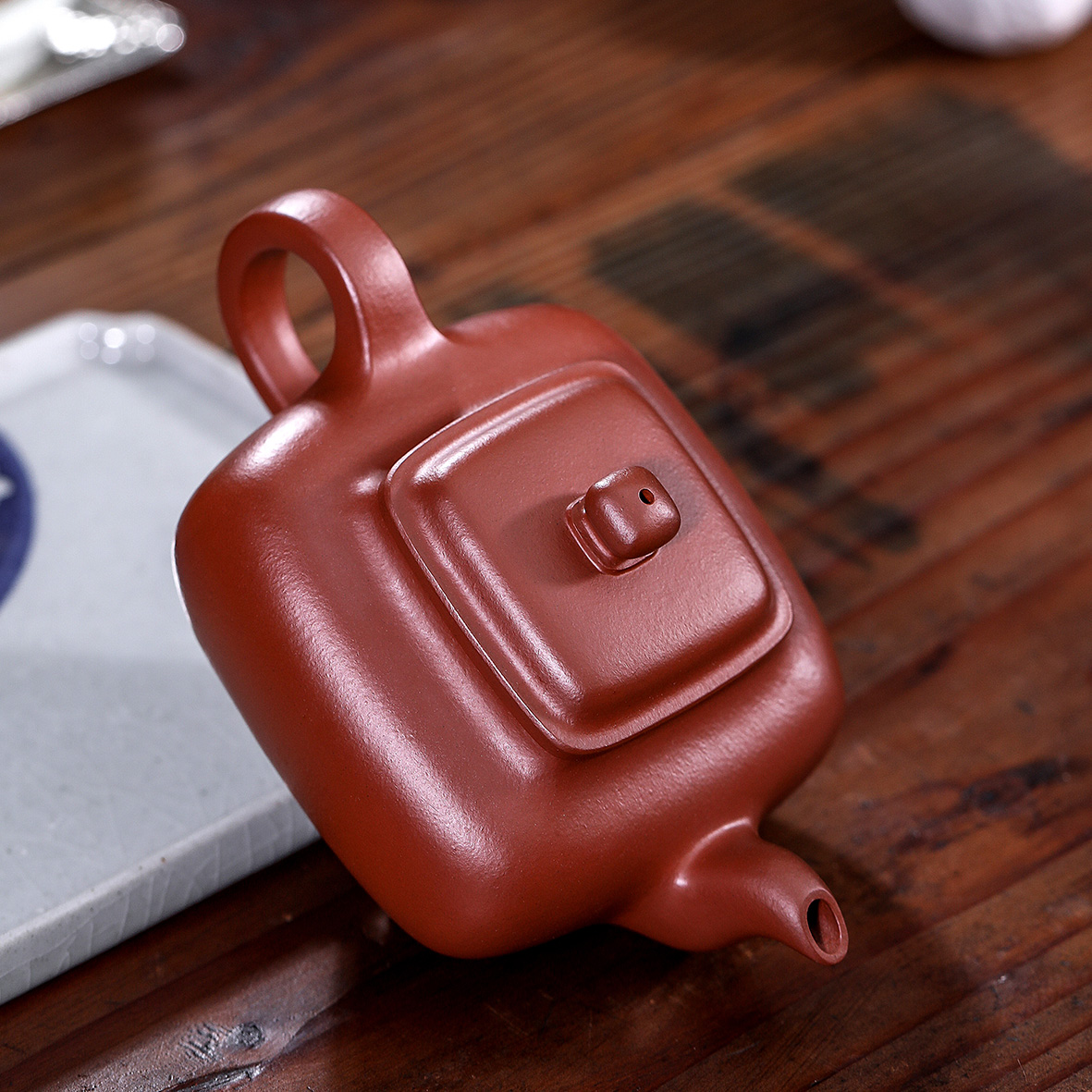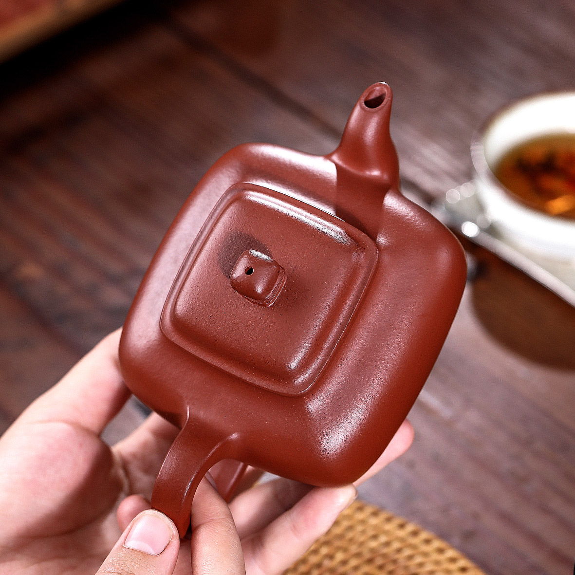 原矿朱泥大红袍四方壶四方器纯全手工传炉紫砂壶紫砂茶壶功夫茶具