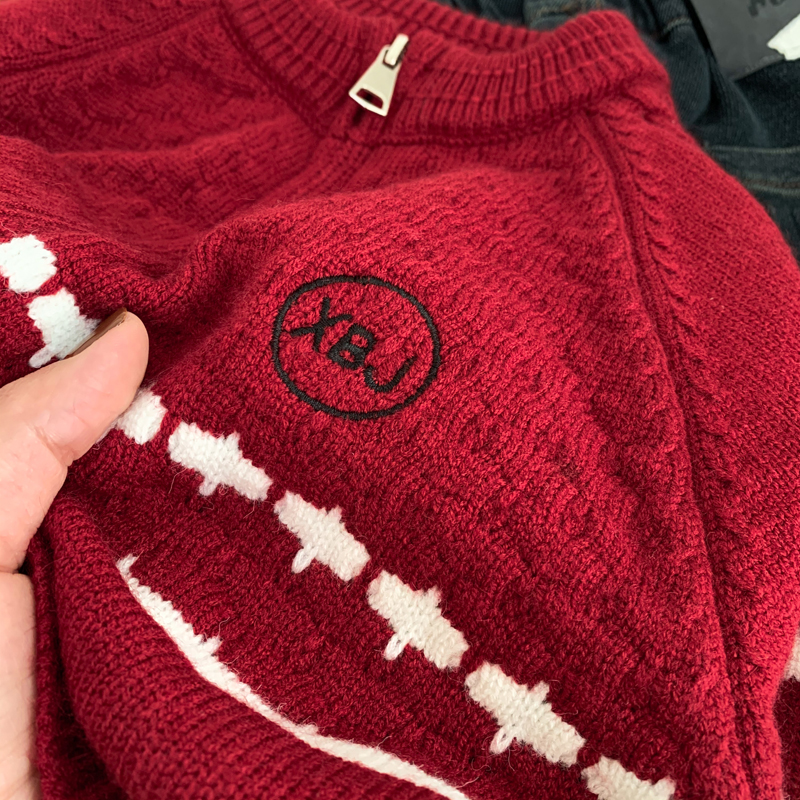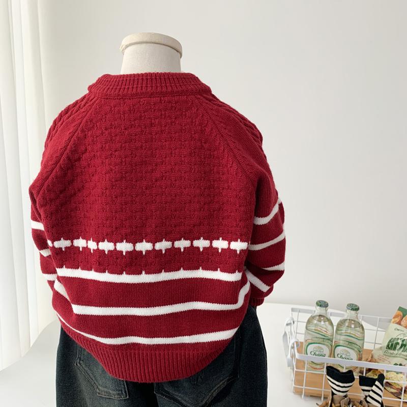 秋冬中小童柔软红色喜庆针织开衫