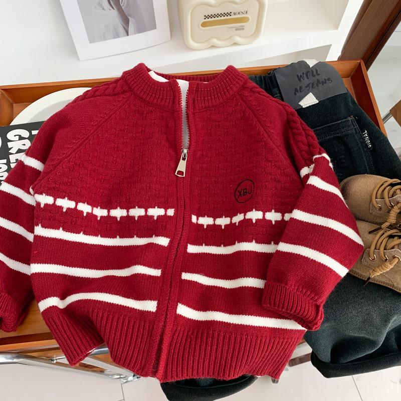男童毛衣开衫洋气红色拜年服2025新款中小儿童时尚针织拉链开衫潮