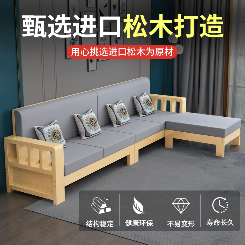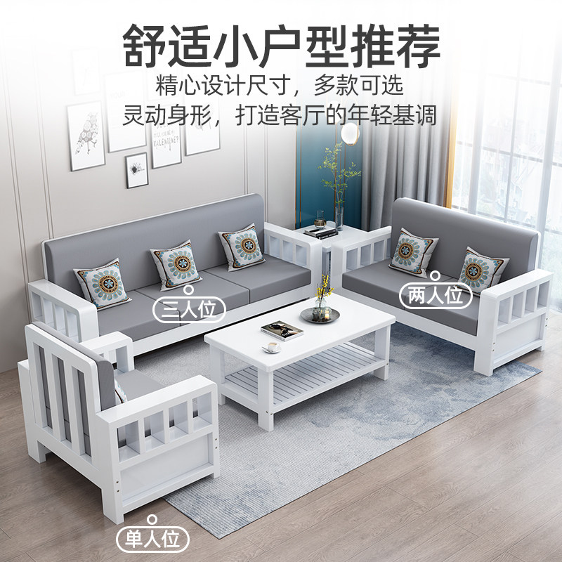 新实木沙发茶几小户型客厅商务布艺三位出租房