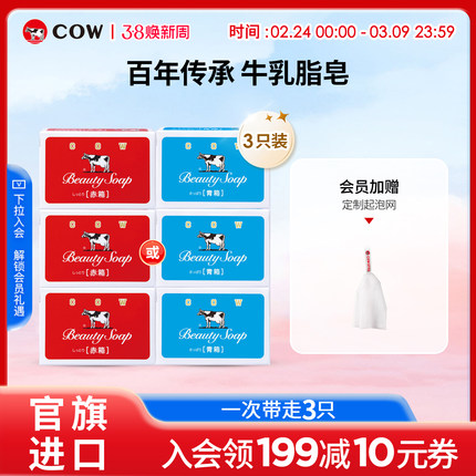 COW牛乳石碱进口牛牌香皂牛奶洁面红蓝玫瑰沐浴滋润洗澡清爽3只