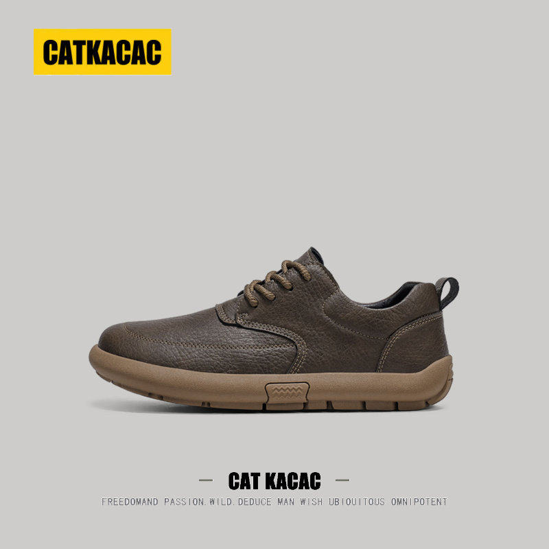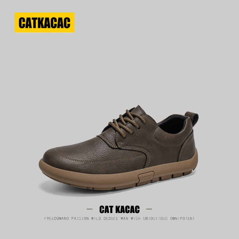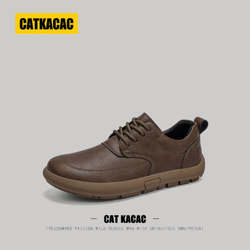 美国CATKACAC复古男鞋2025新款防水工作鞋子真皮软底男士休闲皮鞋