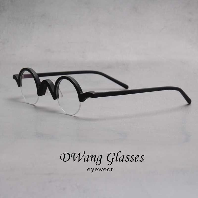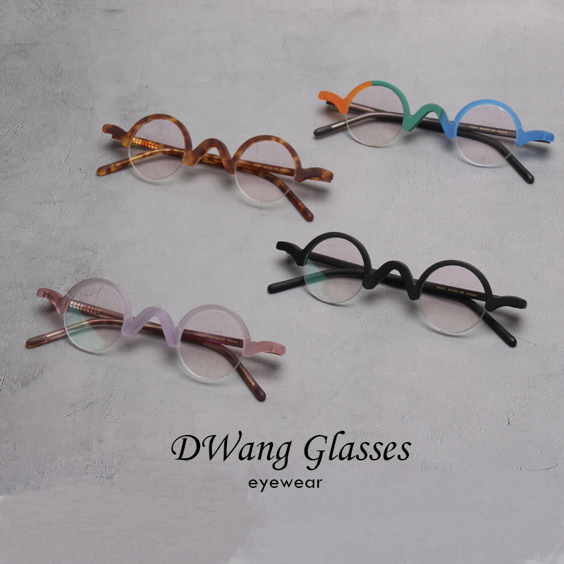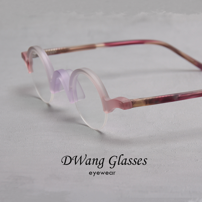 板材复古半圆眼镜框磨砂彩虹拼色小圆片眼镜男女艺术防蓝光配近视