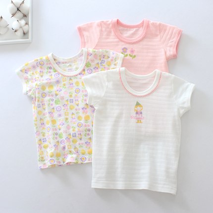 儿童纯棉短袖T恤女宝宝女童女孩薄款竹节棉日系半袖全棉上衣3件装