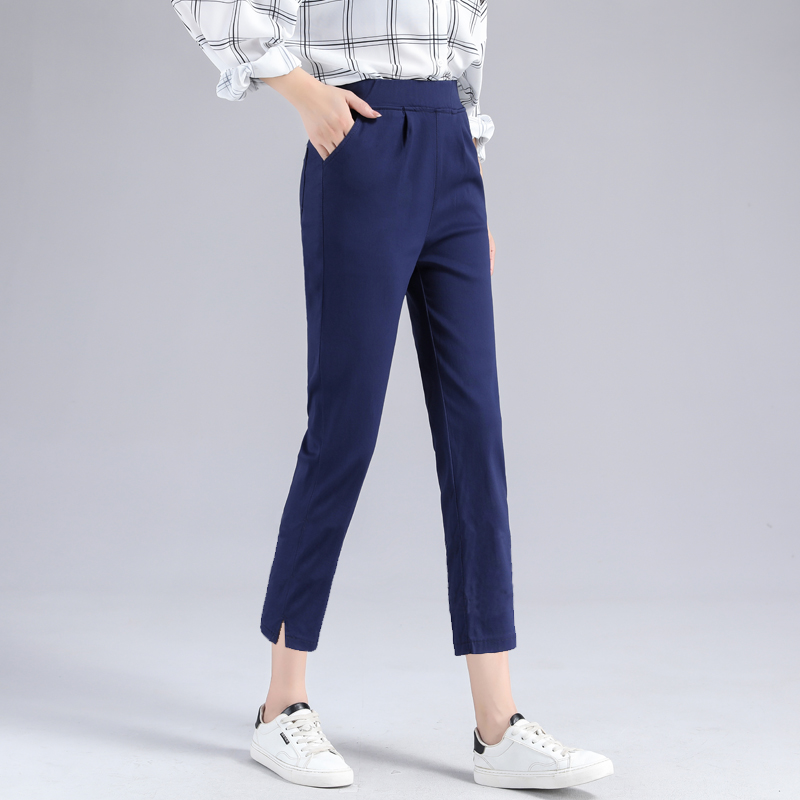 松紧腰弹力七分八分九分裤女夏季薄款黑色宽松直筒大码休闲裤子女