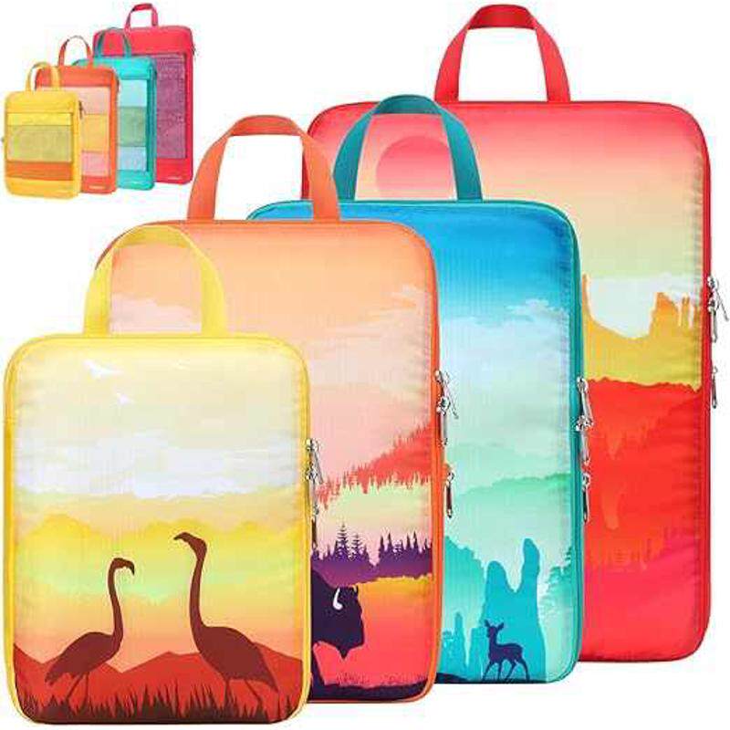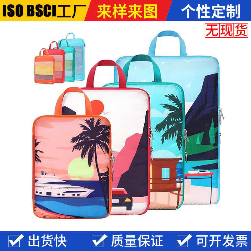 旅行可压缩收纳包4件套收纳袋套装印花行李箱收纳整理收纳袋4件套