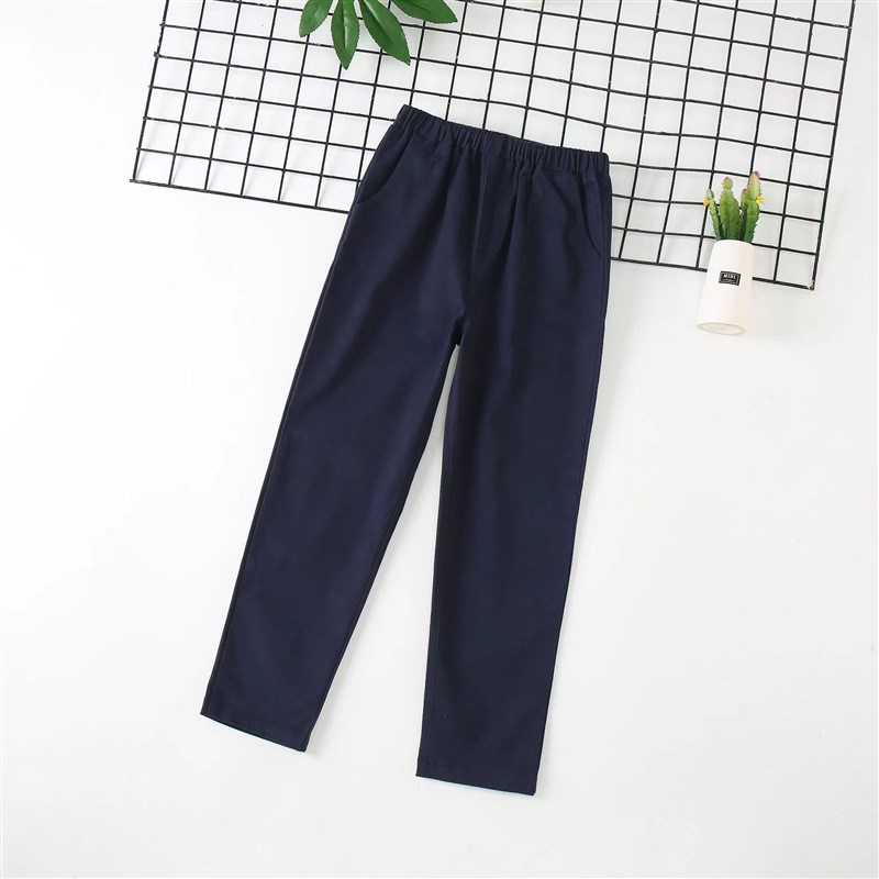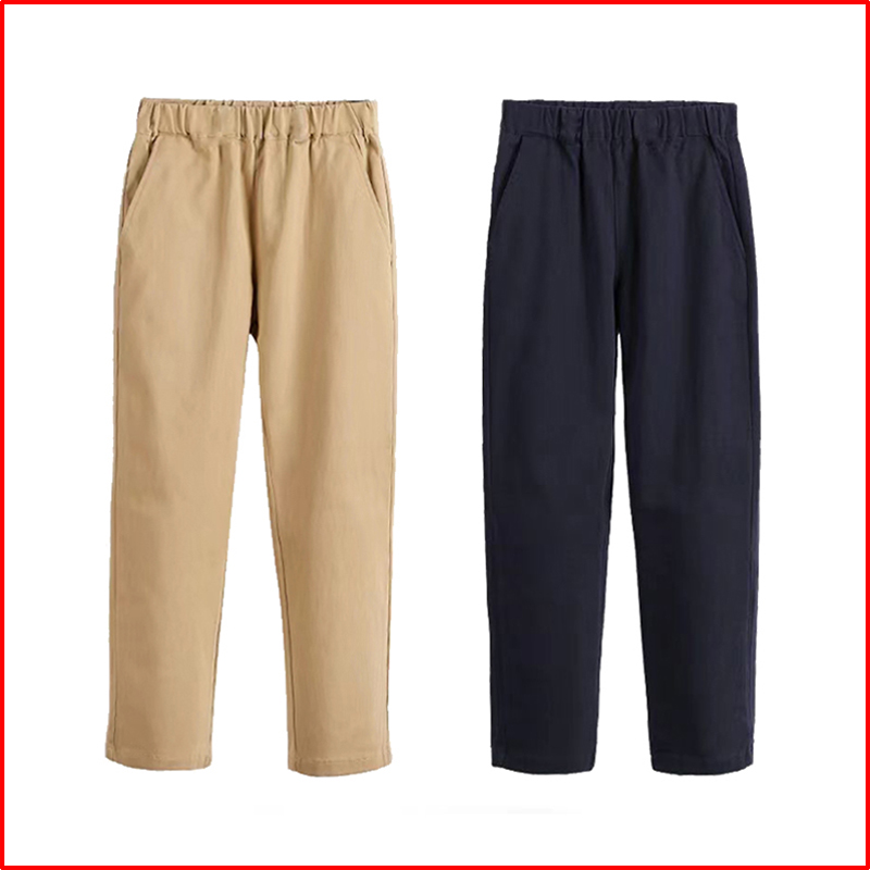 儿童长裤男童卡其色休闲西裤藏青纯棉全松紧直筒裤中小学生校服裤