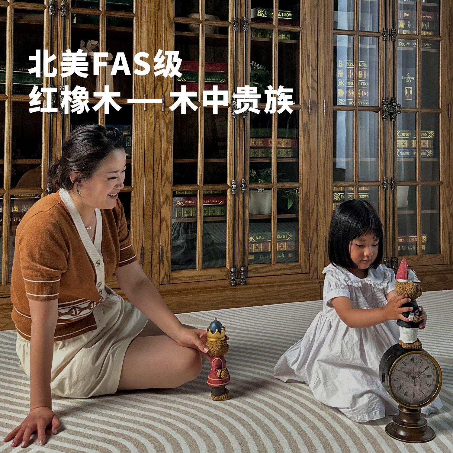 美式做旧红橡木全主材别墅家具书柜客厅展示柜组合柜轻奢书橱收纳
