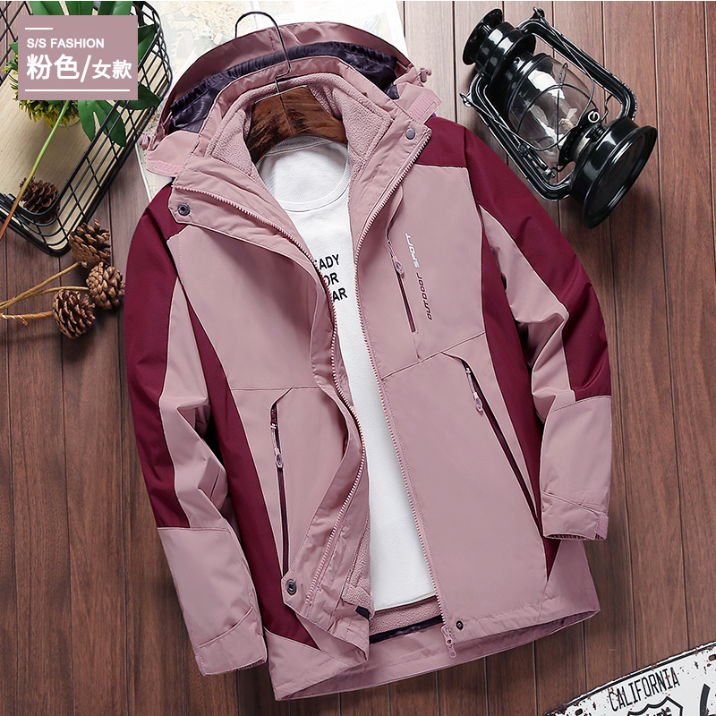 户外冲锋衣男女三合一可拆卸两件套防水登山外套加绒加厚衣裤套装