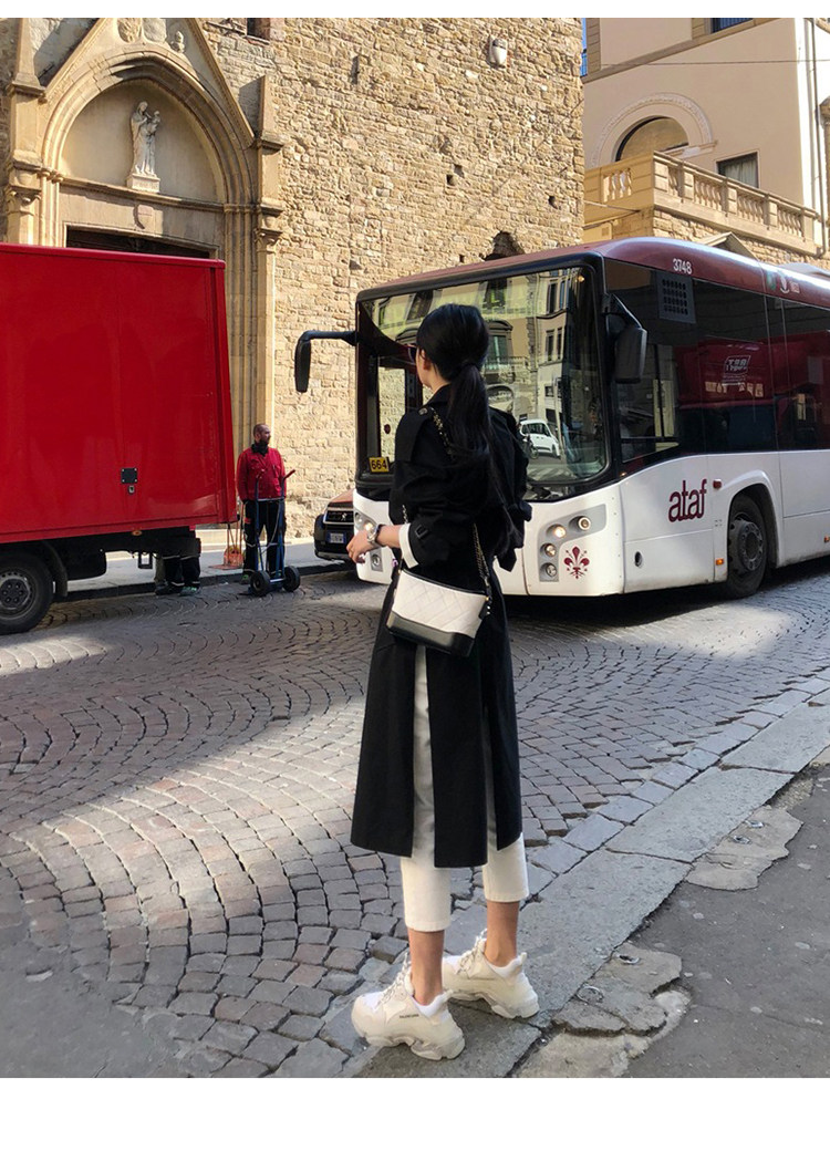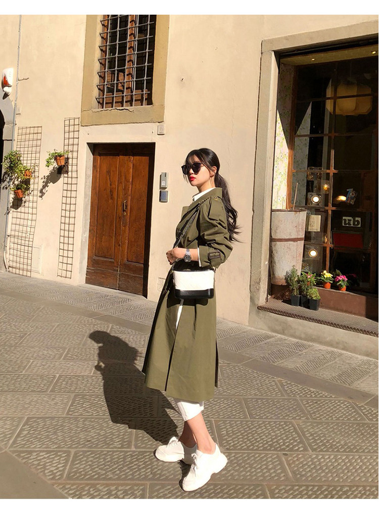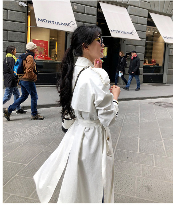 秋女ins白色个性风衣女中长款韩系单排扣系带过膝外套潮时尚大衣