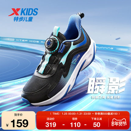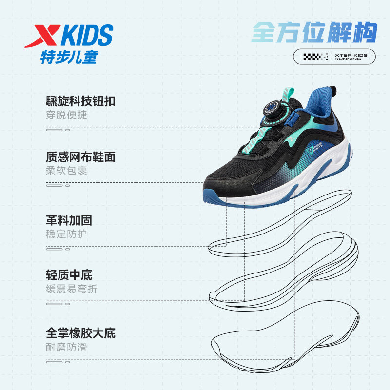 特步童鞋春秋新款大童舒适软底儿童运动鞋男童减震缓震旋钮扣跑鞋