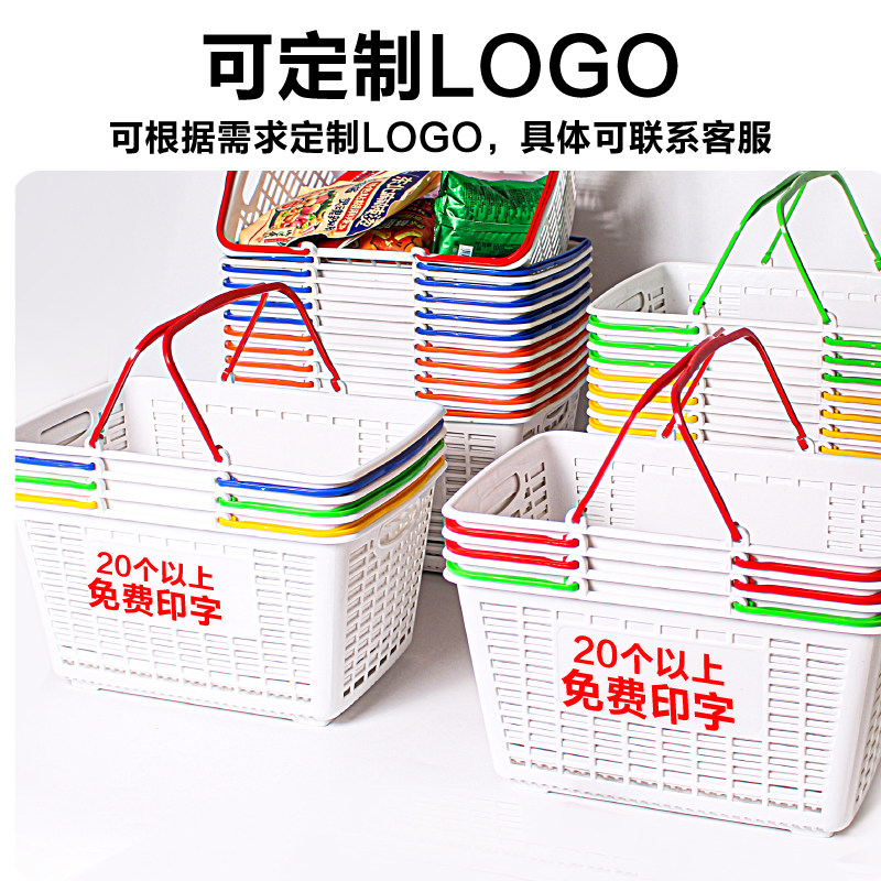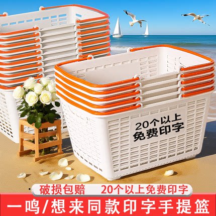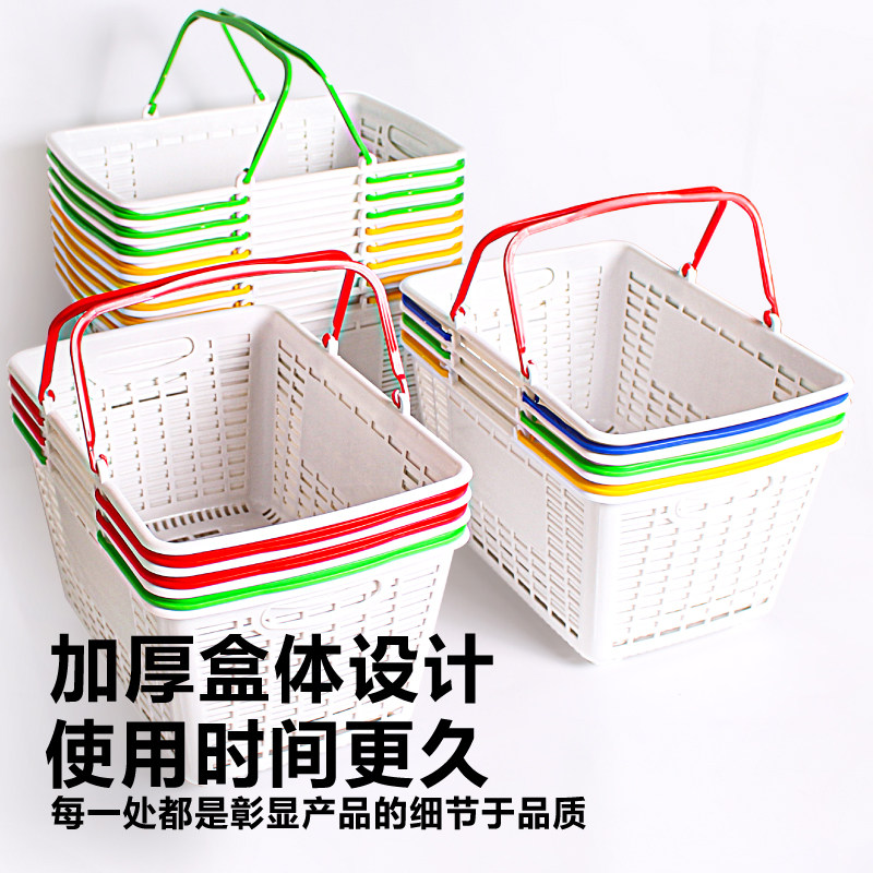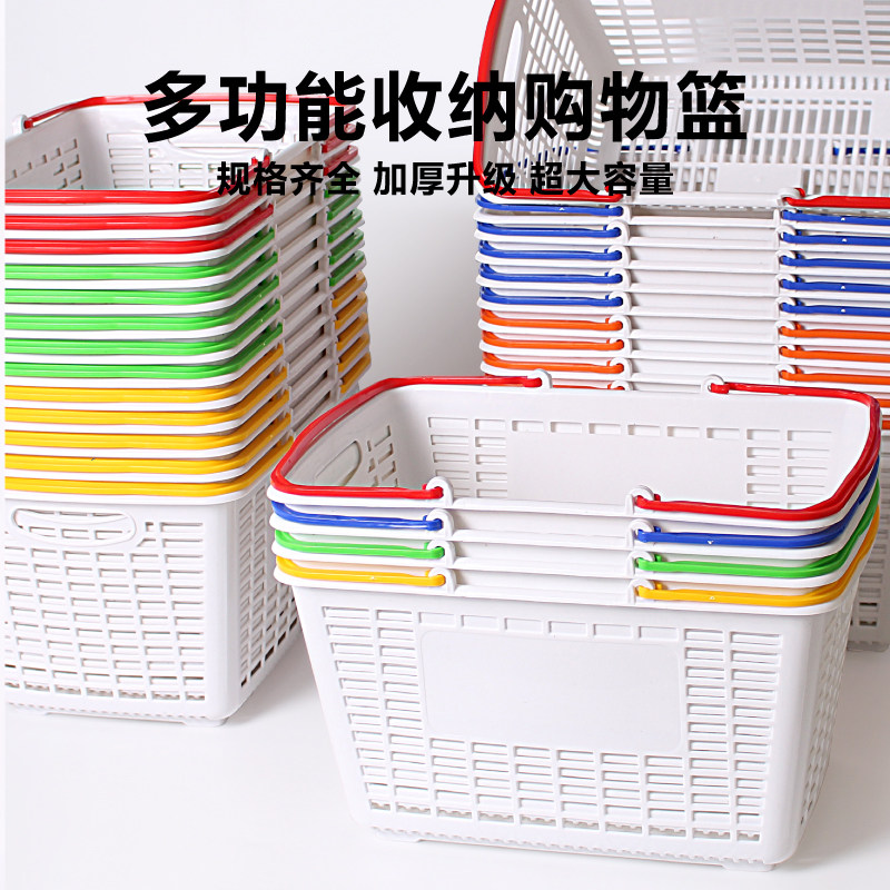 文具店超市零食收纳筐子手提篮加厚中号塑料框子超市购物收纳篮子