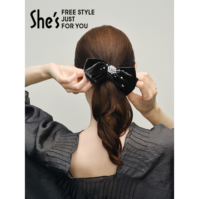 shes茜子优雅丝绒高级感马尾横夹