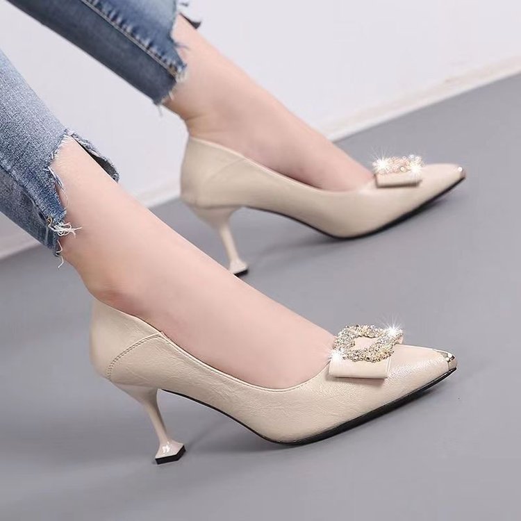 真皮黑色法式尖头浅口单鞋高跟鞋女2025新款春秋细跟中跟气质