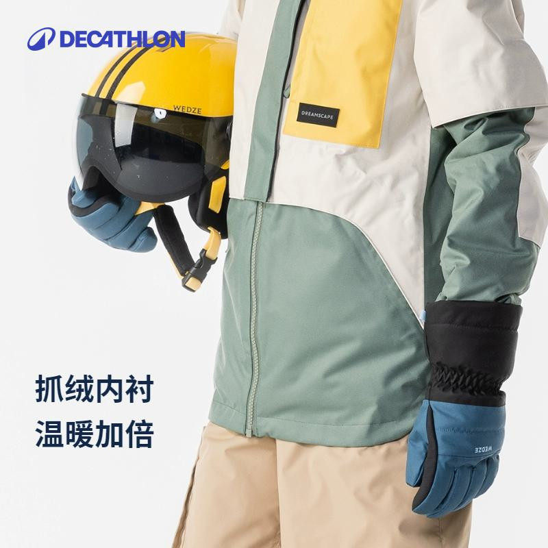 迪卡侬秋冬季儿童保暖防水滑雪手套新款专业运动耐用易穿脱KIDO