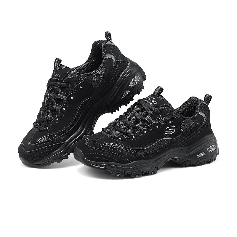 斯凯奇女鞋纯黑色熊猫鞋官方旗舰运动鞋秋季新款老爹鞋厚底休闲鞋