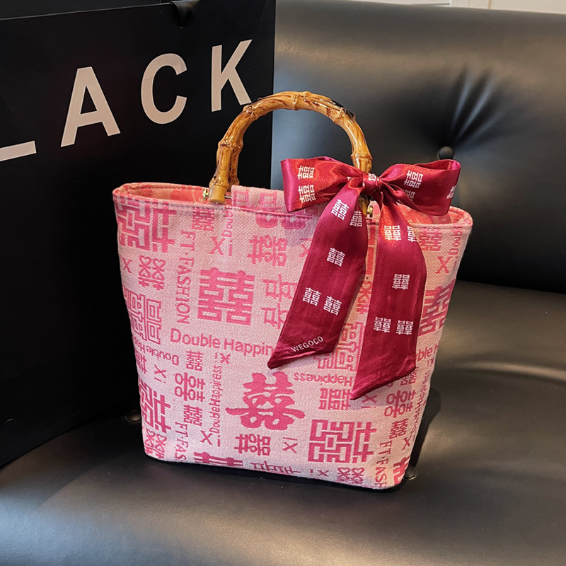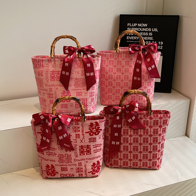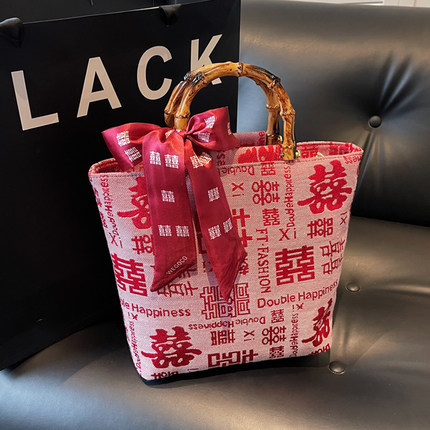 2024新款送礼袋喜字新娘包新中式竹节手提袋伴娘结婚女包平时可用