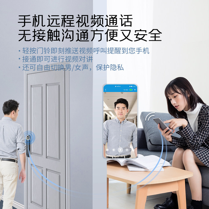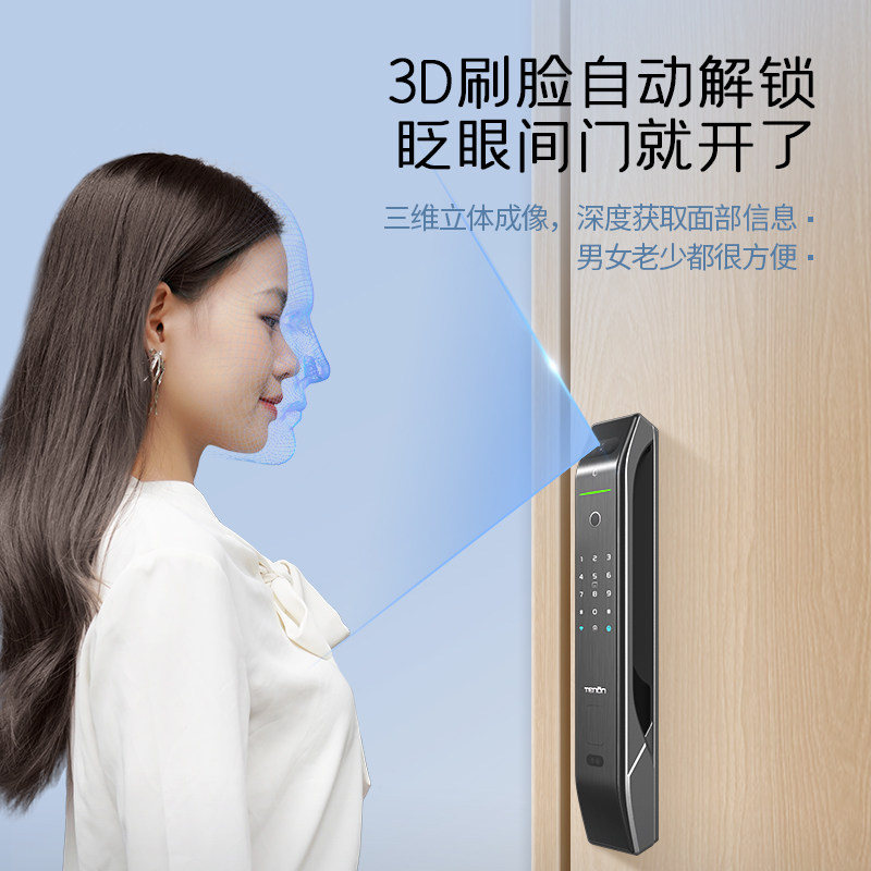 亚太天能指纹锁D7S可视猫眼智能锁3D人脸识别家用防盗门密码锁
