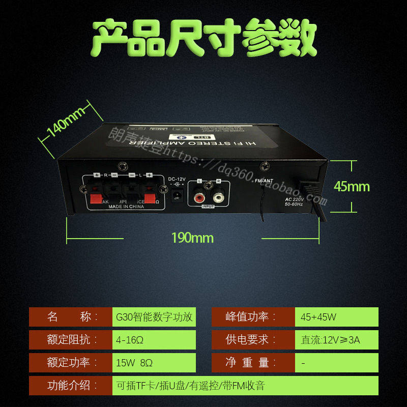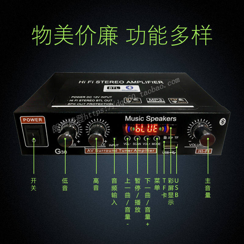 家用二路数字功放机汽车音响蓝牙12V功率放大器2声道功放机G30