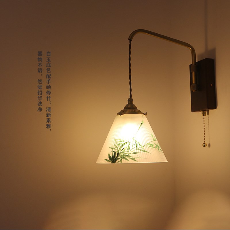 中式绘画美学玻璃吊灯客厅卧室床头玄关过道民宿咖啡厅木板吊线壁