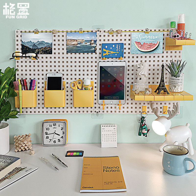 xyt塑料桌面收纳板墙面免打孔桌上儿童房洞洞板置物架书房挂照片