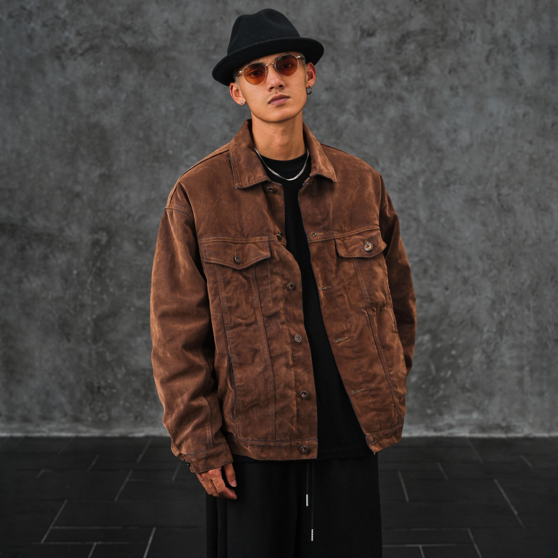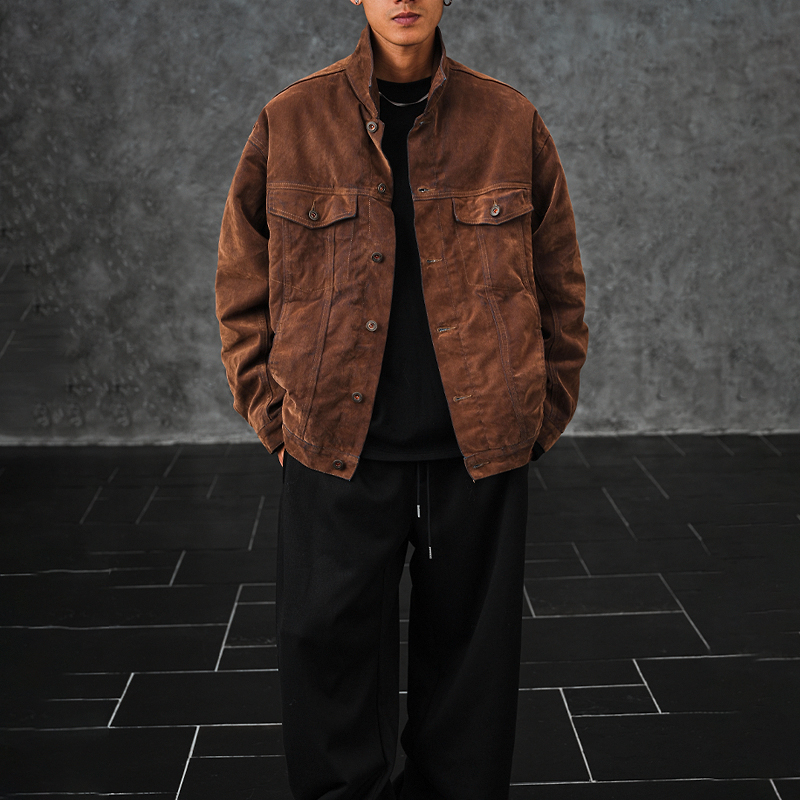 JUP美式复古潮牌牛仔羽绒服男秋冬季新款时尚设计感工装外套上衣