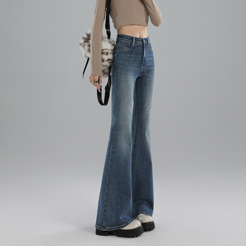 复古色微喇牛仔裤女2025秋季新款高腰弹力喇叭裤复古马蹄裤潮