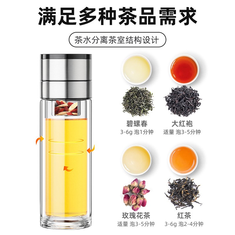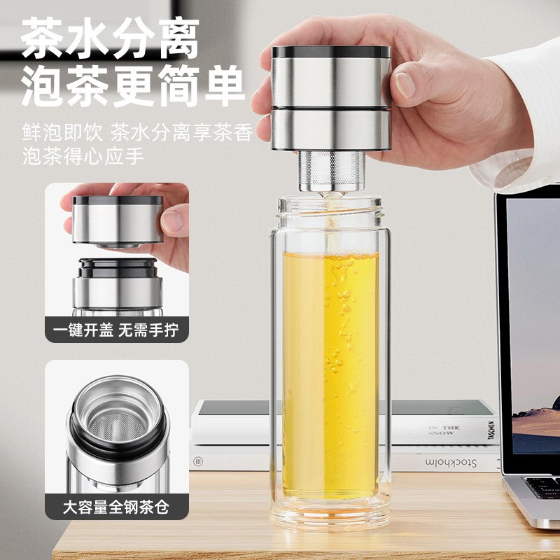 男士茶水分离泡茶杯双层加厚玻璃耐热开盖便携水杯定制