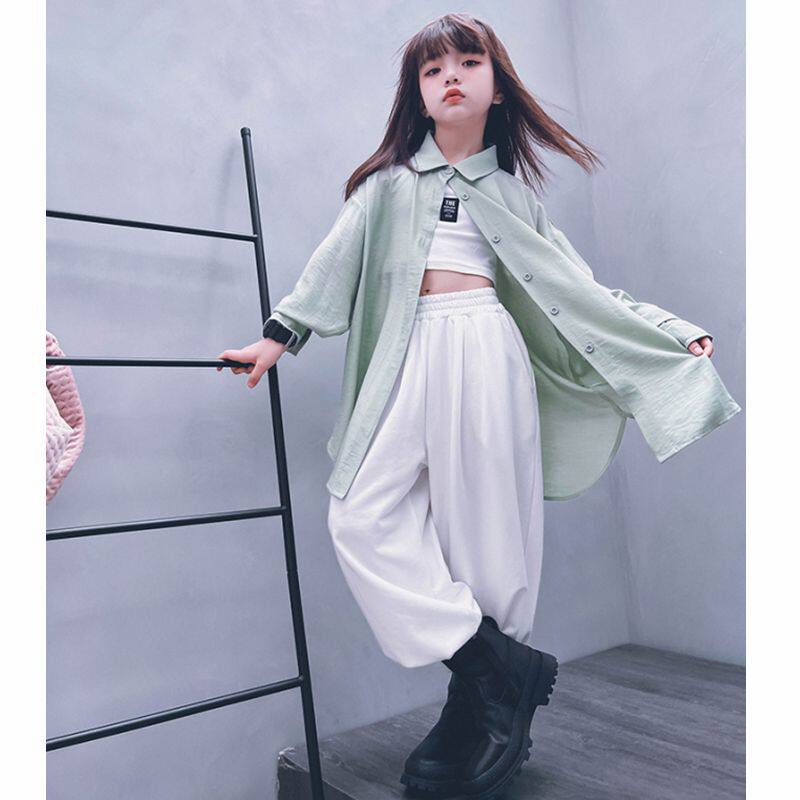 儿童舞蹈衬衫男女童薄款防晒衣纯色宽松垂感爵士舞彩色衬衣亲子装