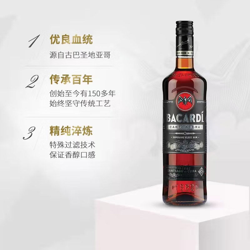 百加得(Bacardi)洋酒黑朗姆酒500ML莫吉托基酒长岛冰茶