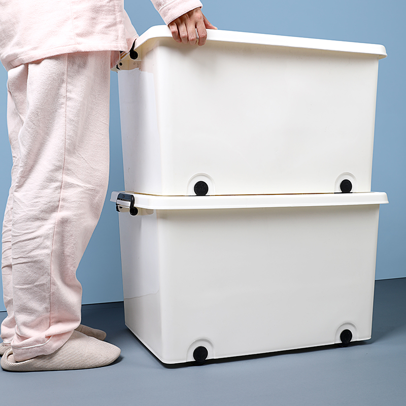 收纳箱塑料加厚特大号 带盖衣物储物盒周转箱家用带轮学生整理箱