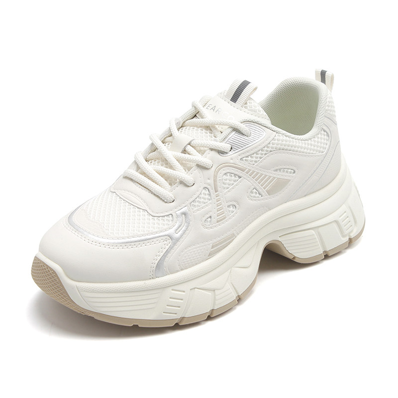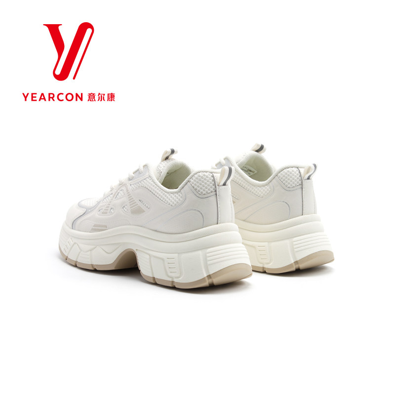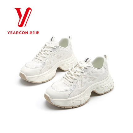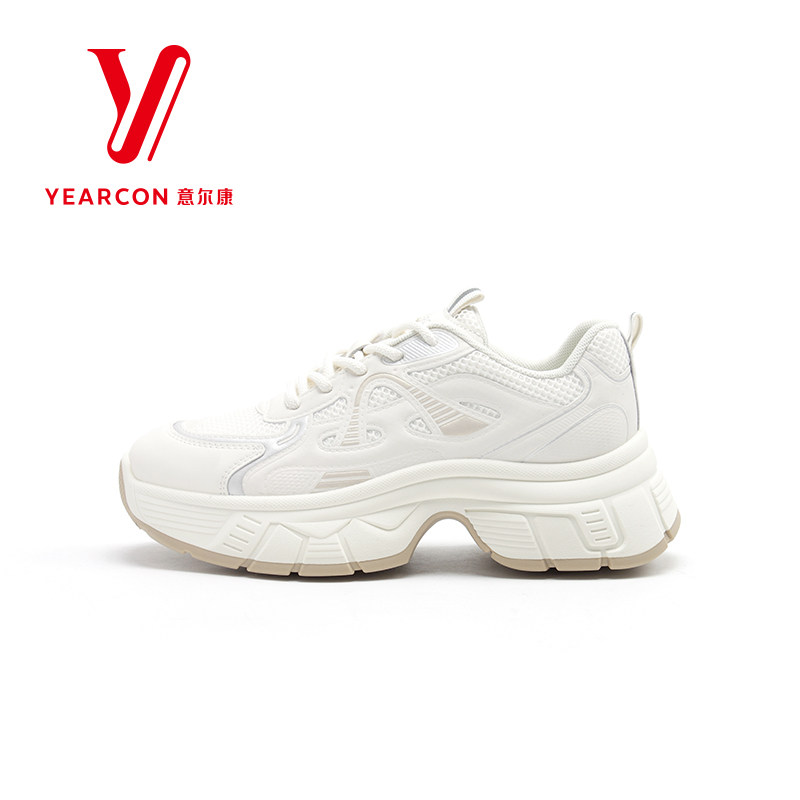 意尔康休闲运动鞋女士2025春季新款老爹鞋厚底增高小个子白色女鞋