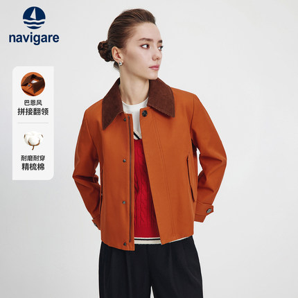 Navigare意大利小帆船拼接翻领短装风衣女士2025秋季新款休闲外套
