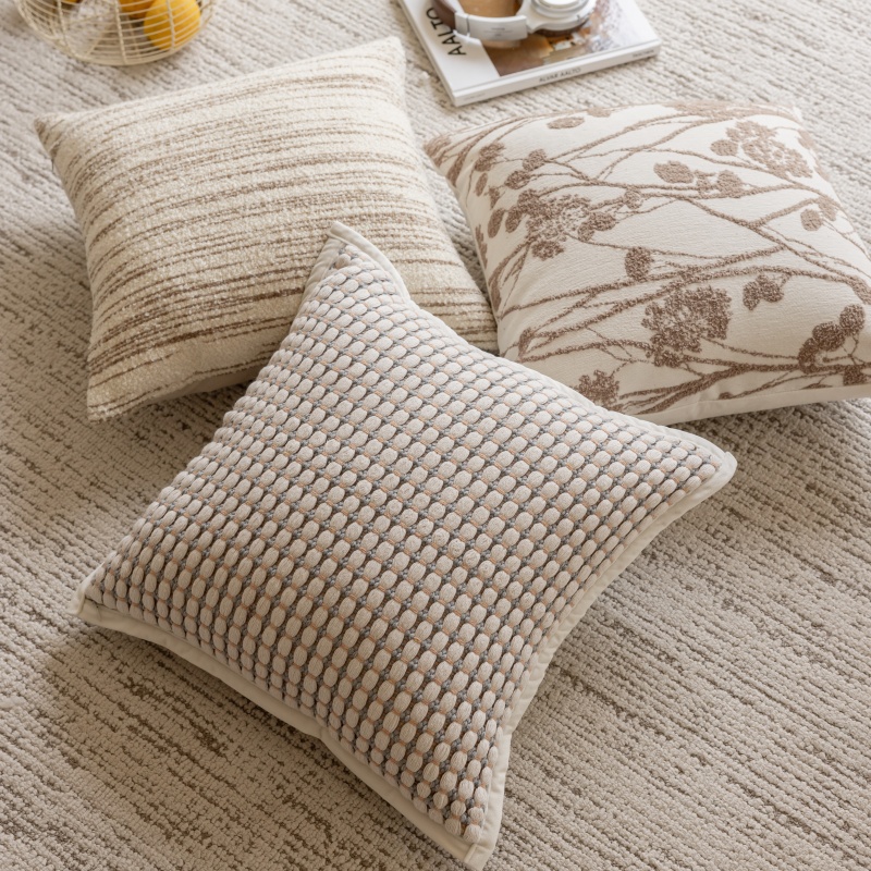 雅梵林 诧寂风茶木色抱枕美拉德小花朵样板间客厅沙发靠垫靠枕套
