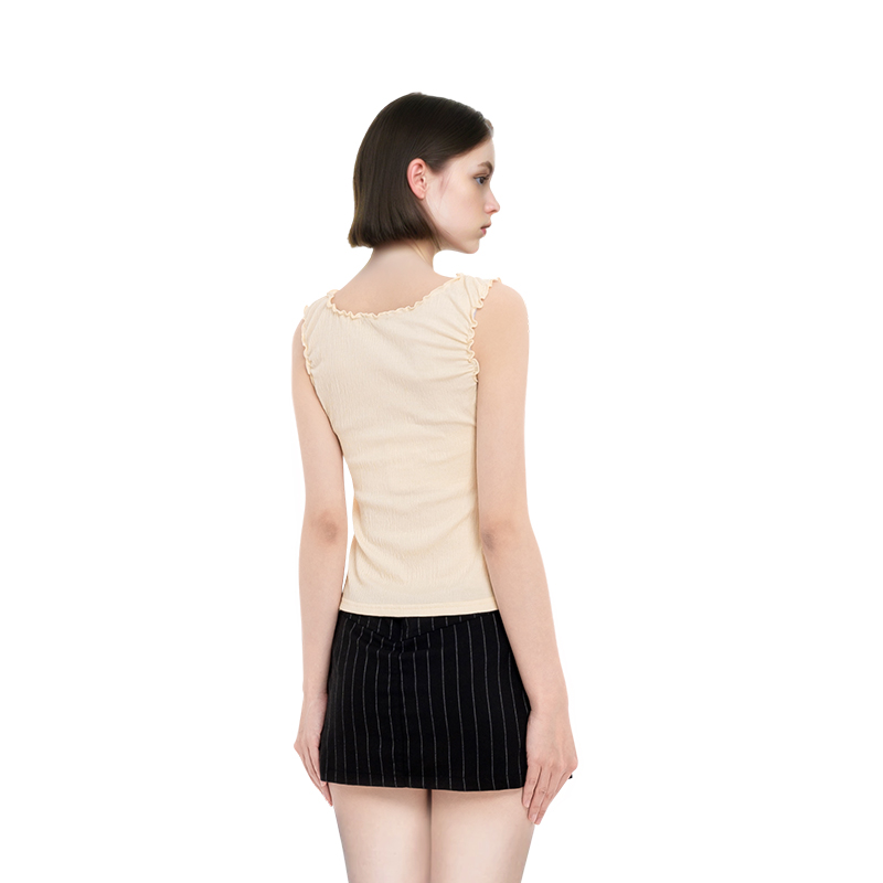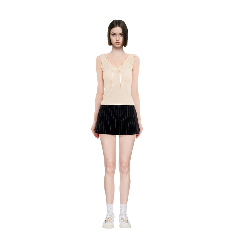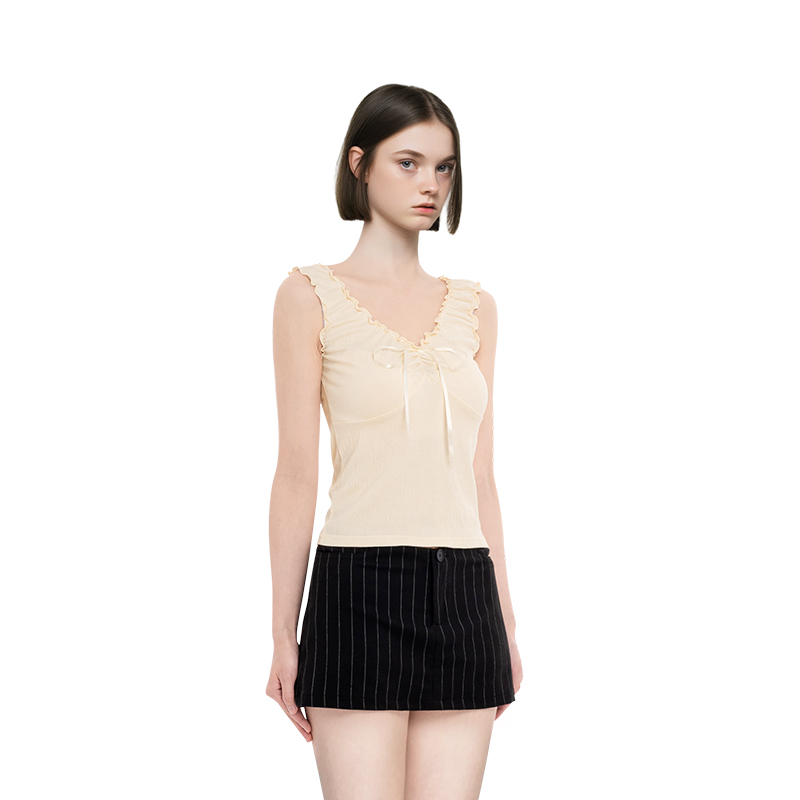 BM背心女V领木耳边2025新款夏季甜美纯欲风修身显瘦百搭无袖上衣