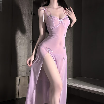情趣内衣带钢圈性感透视网纱诱惑露背聚拢小胸约会战袍吊带睡衣裙