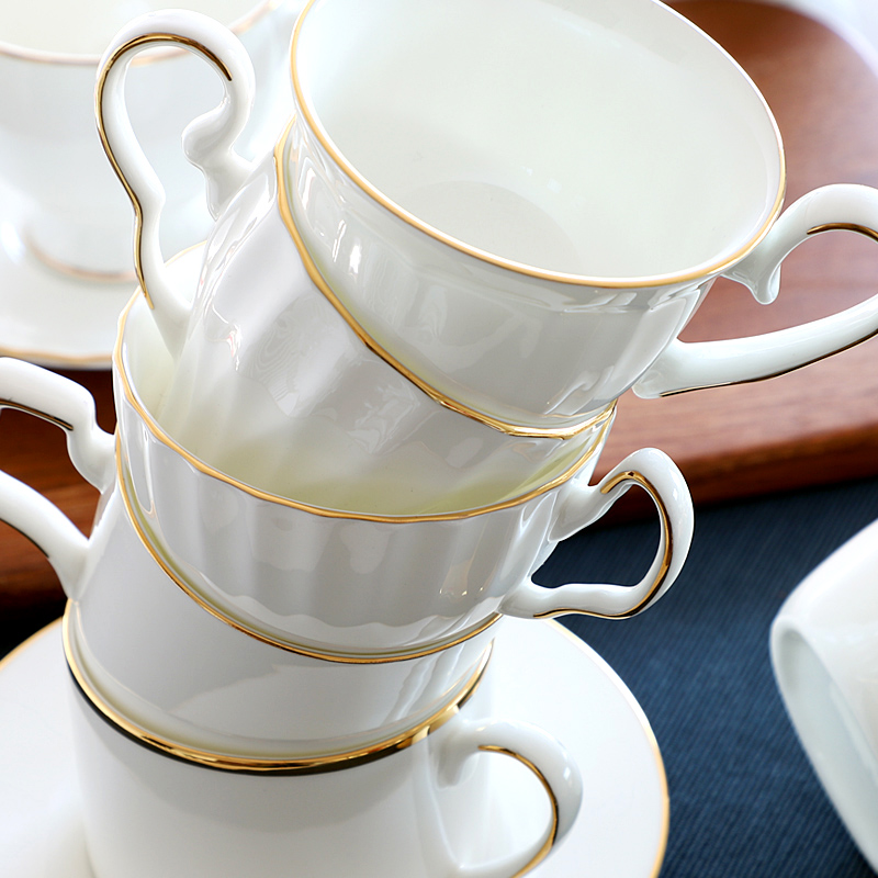 金边骨瓷茶杯下午茶茶具精致家用小奢华咖啡杯碟套装陶瓷简约欧式