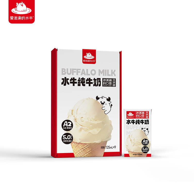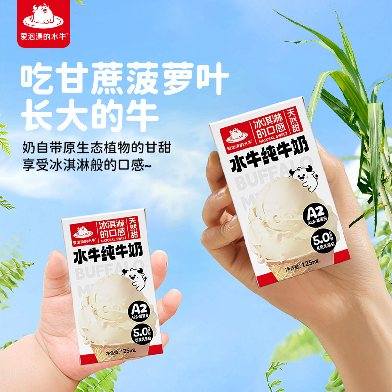 爱泡澡的水牛纯牛奶125ml*9盒整箱试饮装学生儿童营养早餐水牛奶