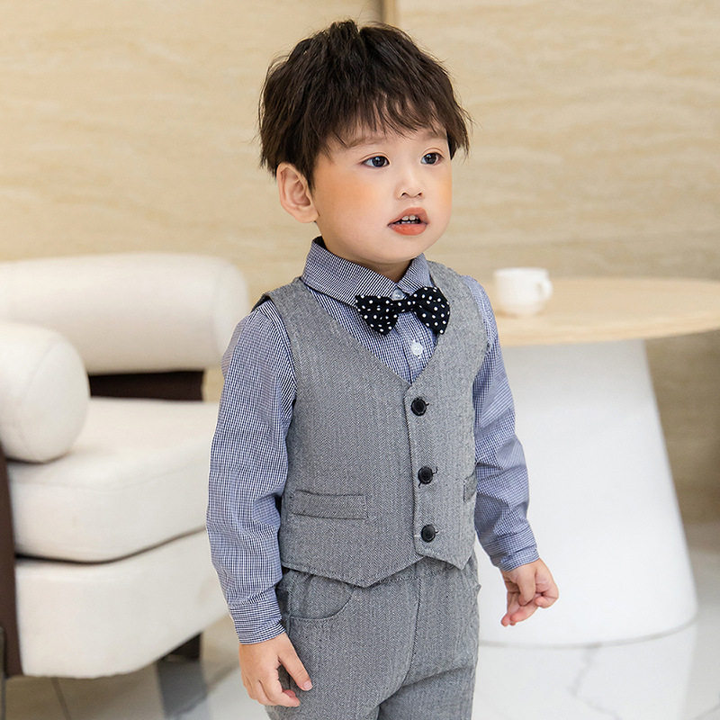 儿童西装套装男童周岁生日礼服男宝宝三件花童婴儿主持人英伦西服