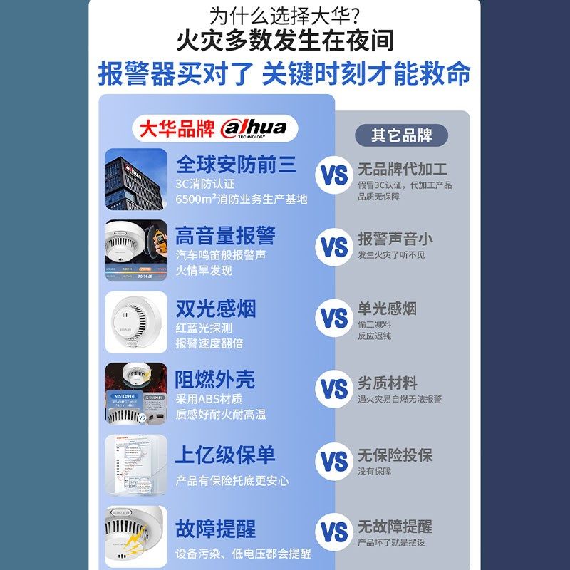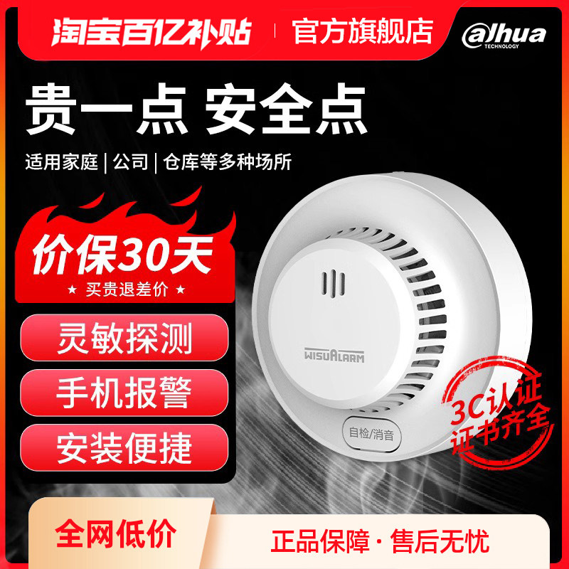 大华无线烟雾报警器工厂火灾探测烟感应报警器消防专用家用烟感器