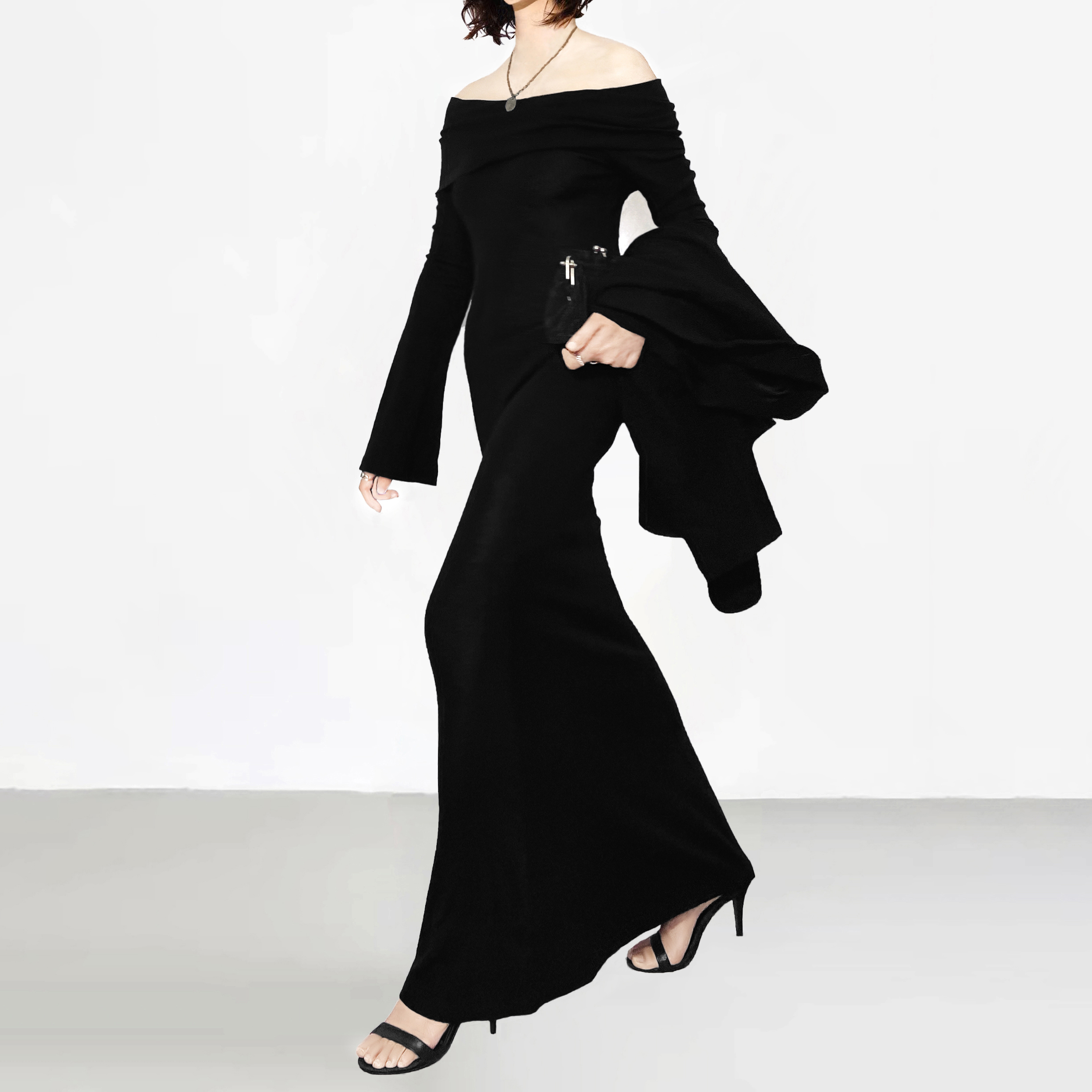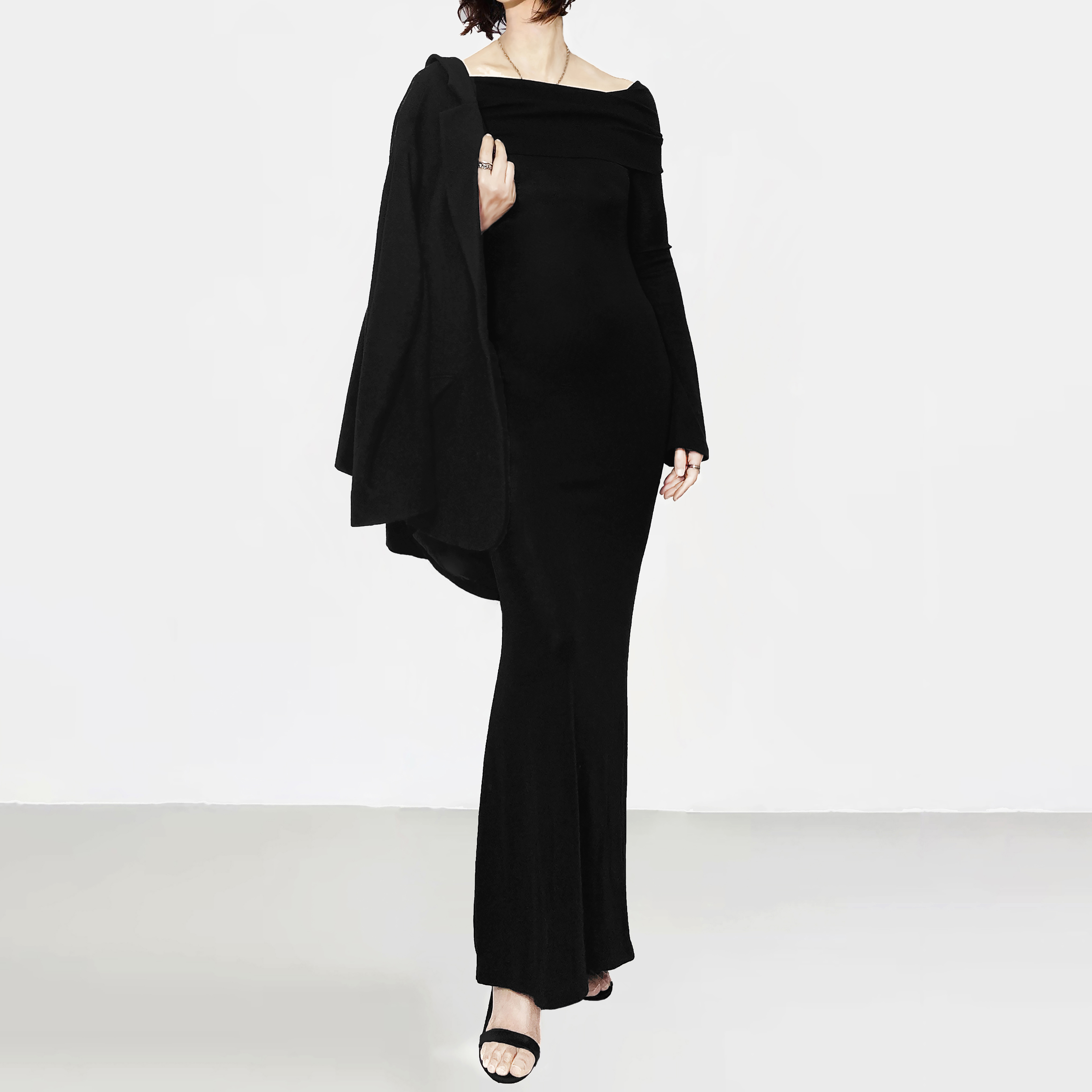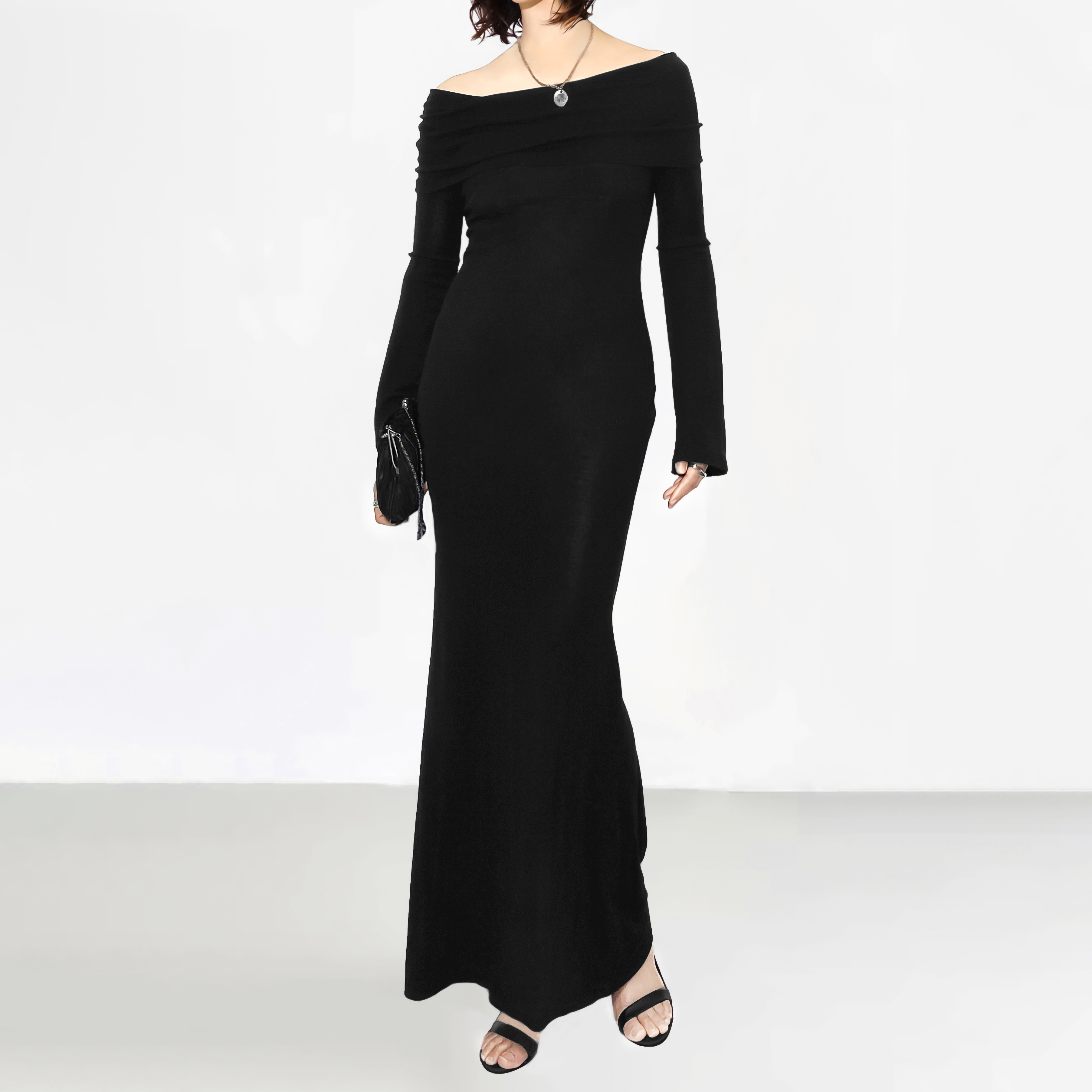陈小满原创设计黑色羊毛气质针织连衣裙2025秋新款正式场合礼服裙