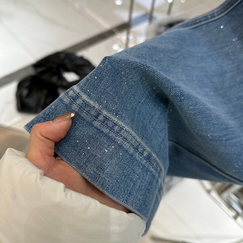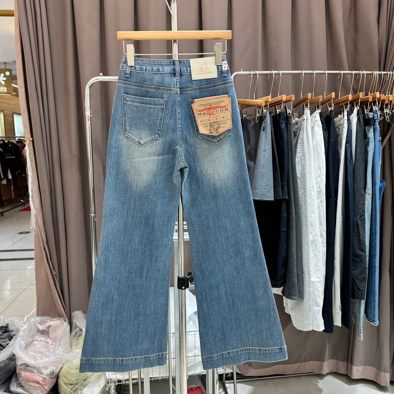 欧洲站四面弹微喇叭牛仔裤