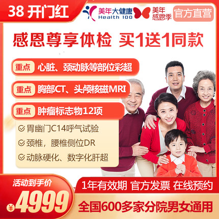 美年大健康 感恩尊享体检套餐父母中青老高端男女体检单人5折促销