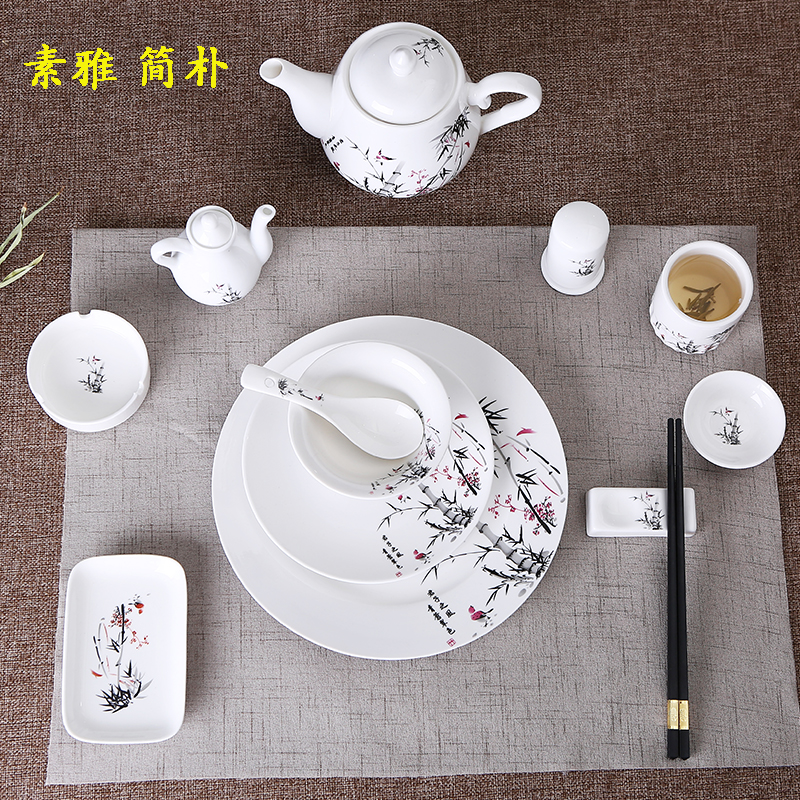 高档酒店餐具摆台套装创意陶瓷四件套饭店用品中式简约碗碟盘套装