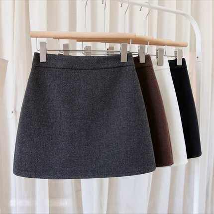深灰色毛呢短裙大码a字裙半身裙女秋冬黑色包臀裙裤呢子百搭显瘦