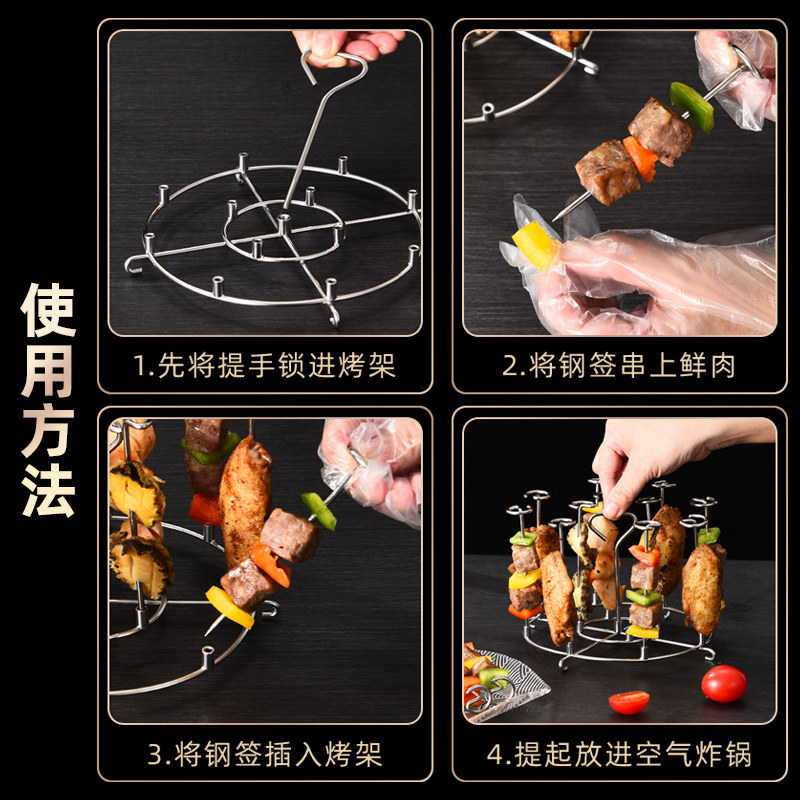 空气炸锅立式烤架304不锈钢通用烤串烤签烤针厨房家用烤箱配件