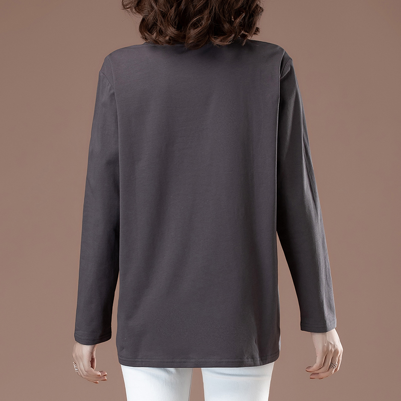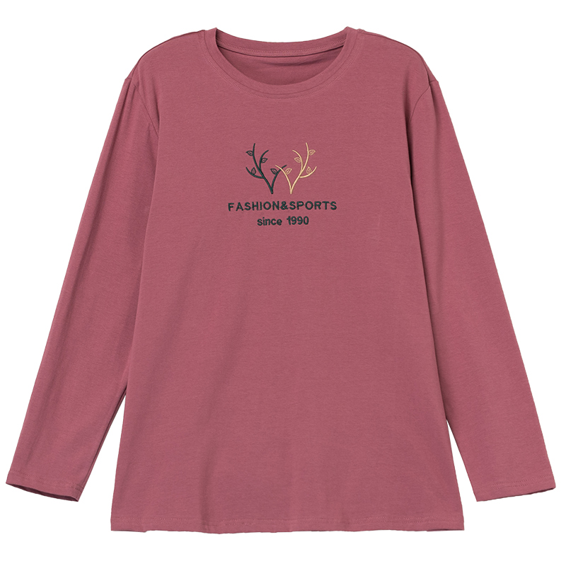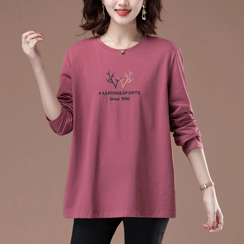 女士中老年纯棉T恤女长袖春秋新款宽松打底衫妈妈加肥加大码上衣